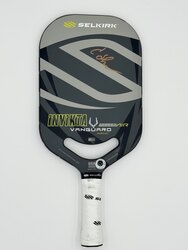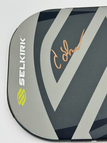 Collin Shick played with this paddle in multiple PPA tournaments. The paddle is a Selkirk Invikta Vanguard Power Air Midweight paddle with custom weight configuration for Collin Shick. Signed in GOLD