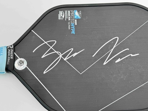 Zane Navratil used this paddle in multiple PPA Tournaments. ProXR 2025 PROTOHYPE Pickleball paddle customized for Zane Navratil. Signed in SILVER.
